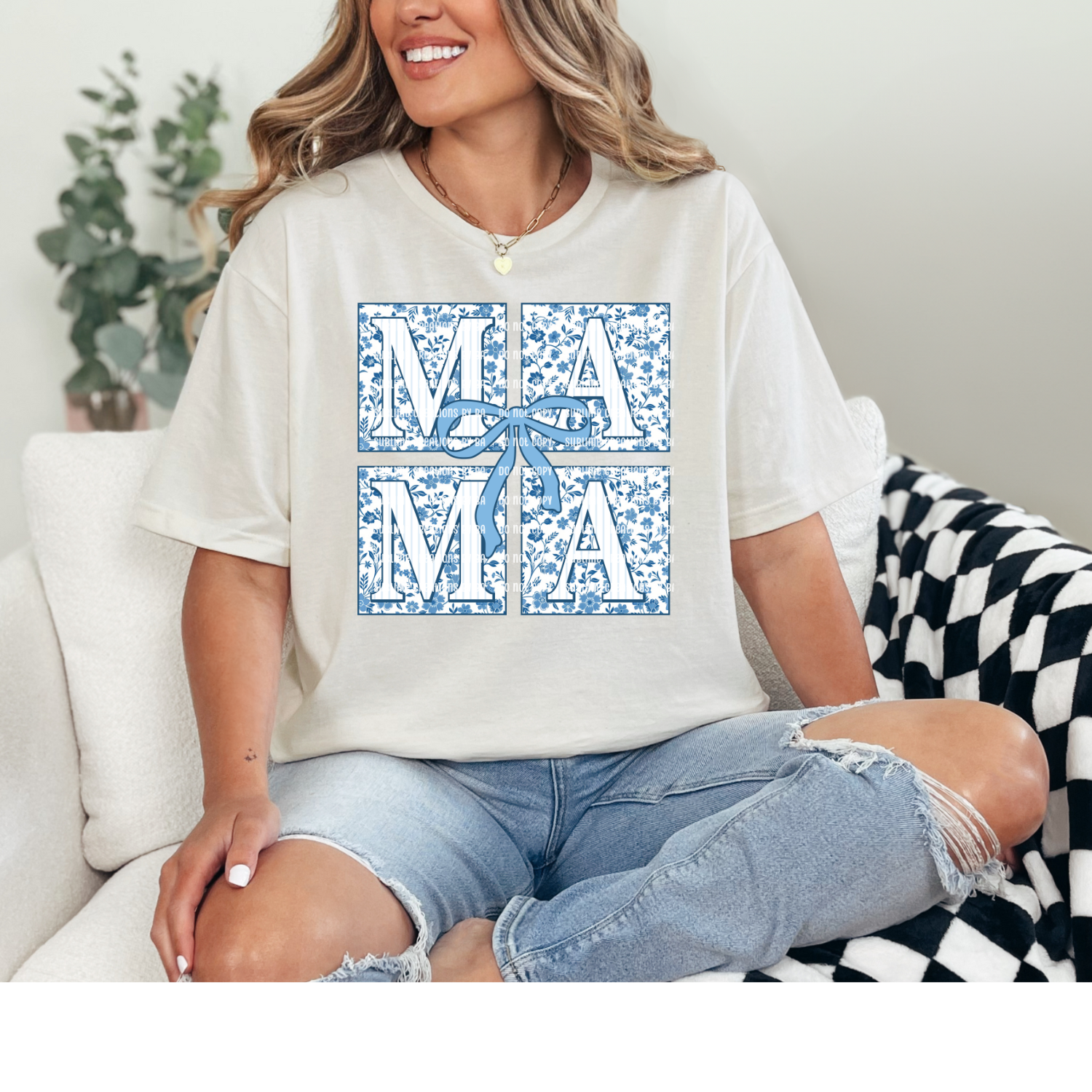 Elevate your style with the captivating Blue Floral Chinoise Coquette Tee.