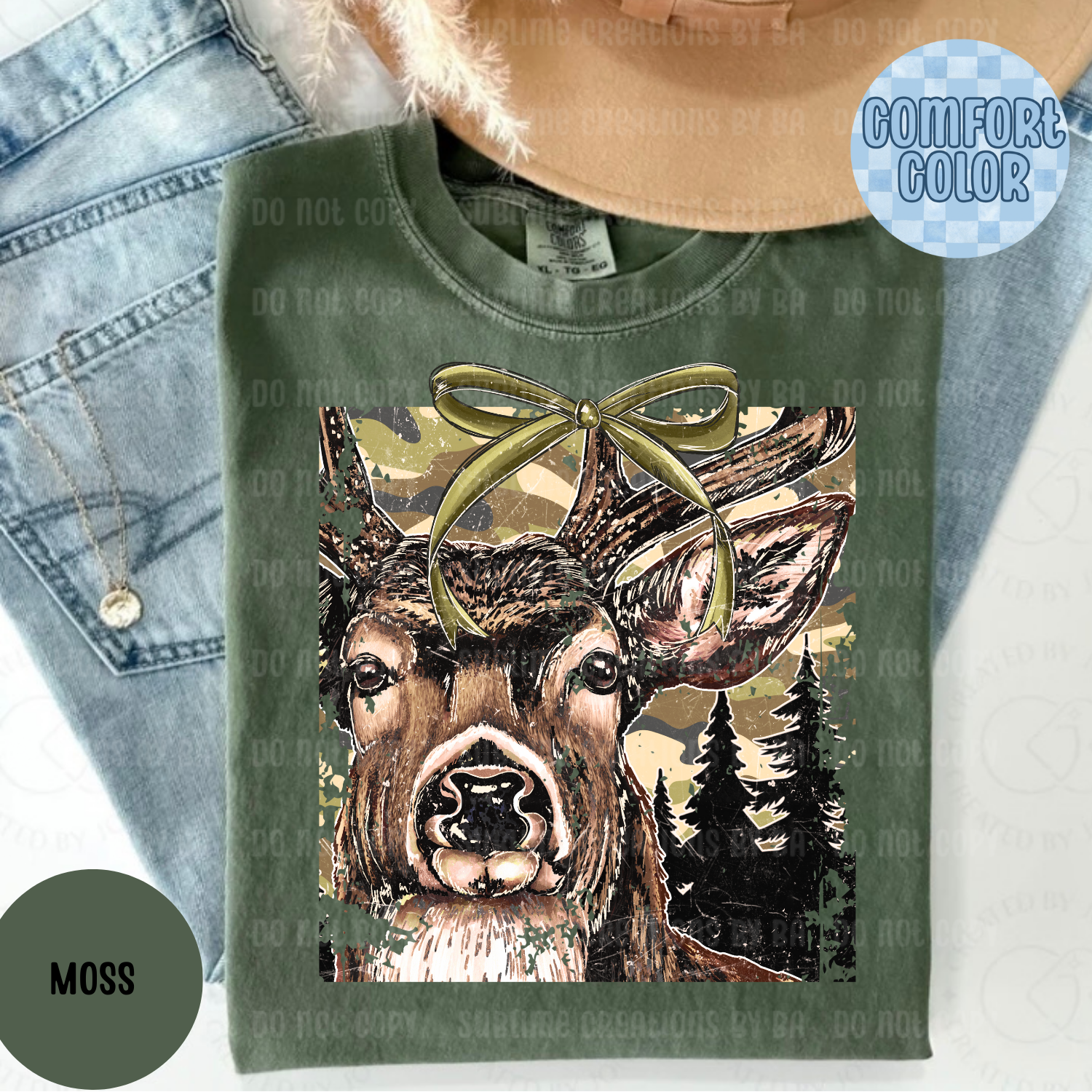 This Buck Camo Coquette Comfort Color features a trendy deer camo design paired with soft, feminine bow details for a look that’s both bold and cute. Designed for cozy days, outdoor lovers, and anyone who loves mixing camo with girly vibes.