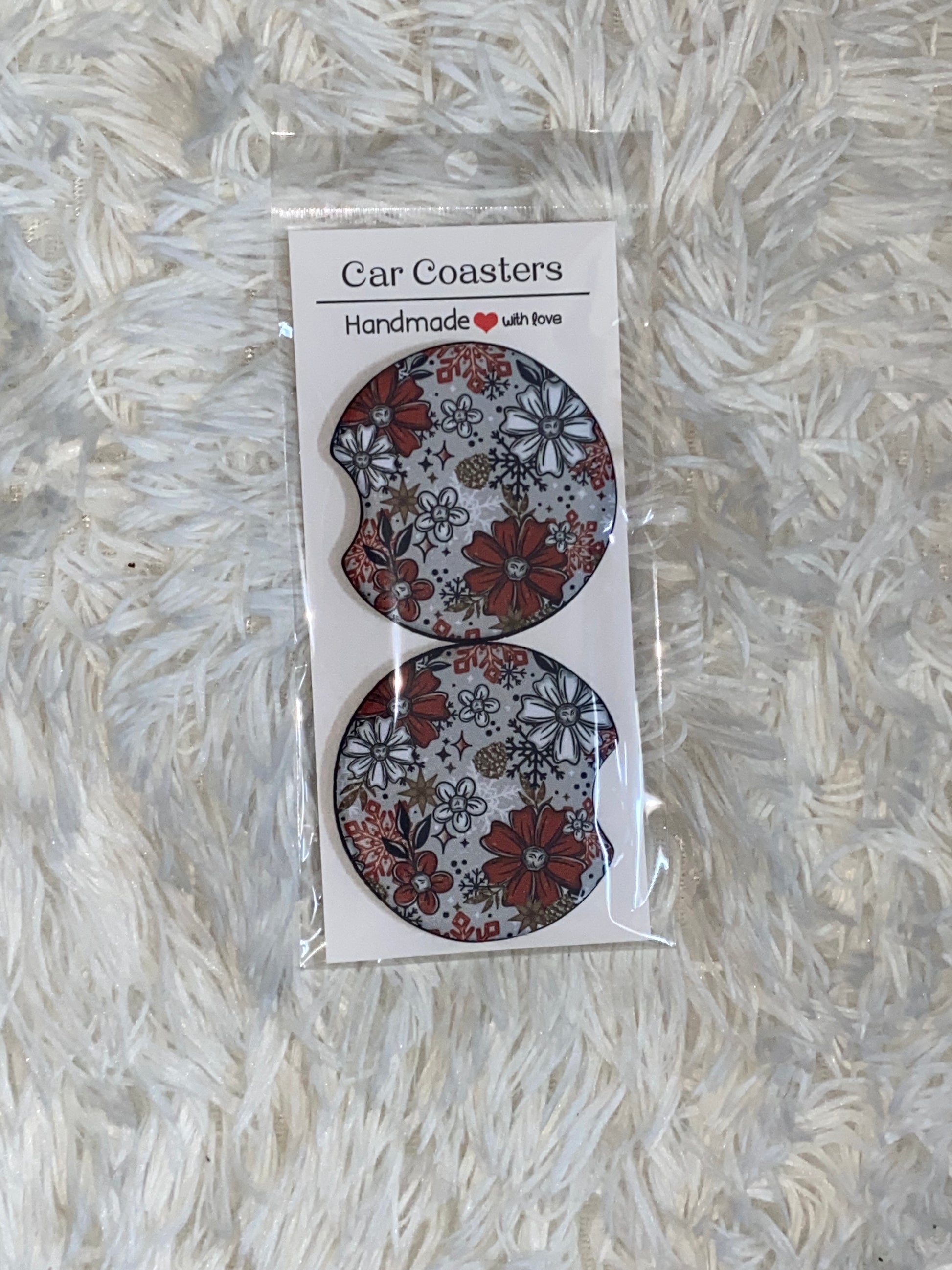 Christmas Florals Print Car Coaster Set