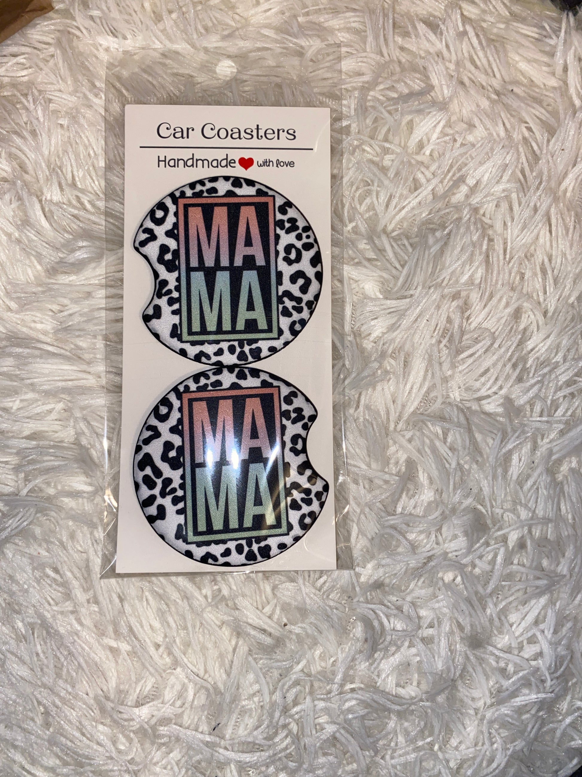 Colorful Mama Leopard Printed Car Coaster Set