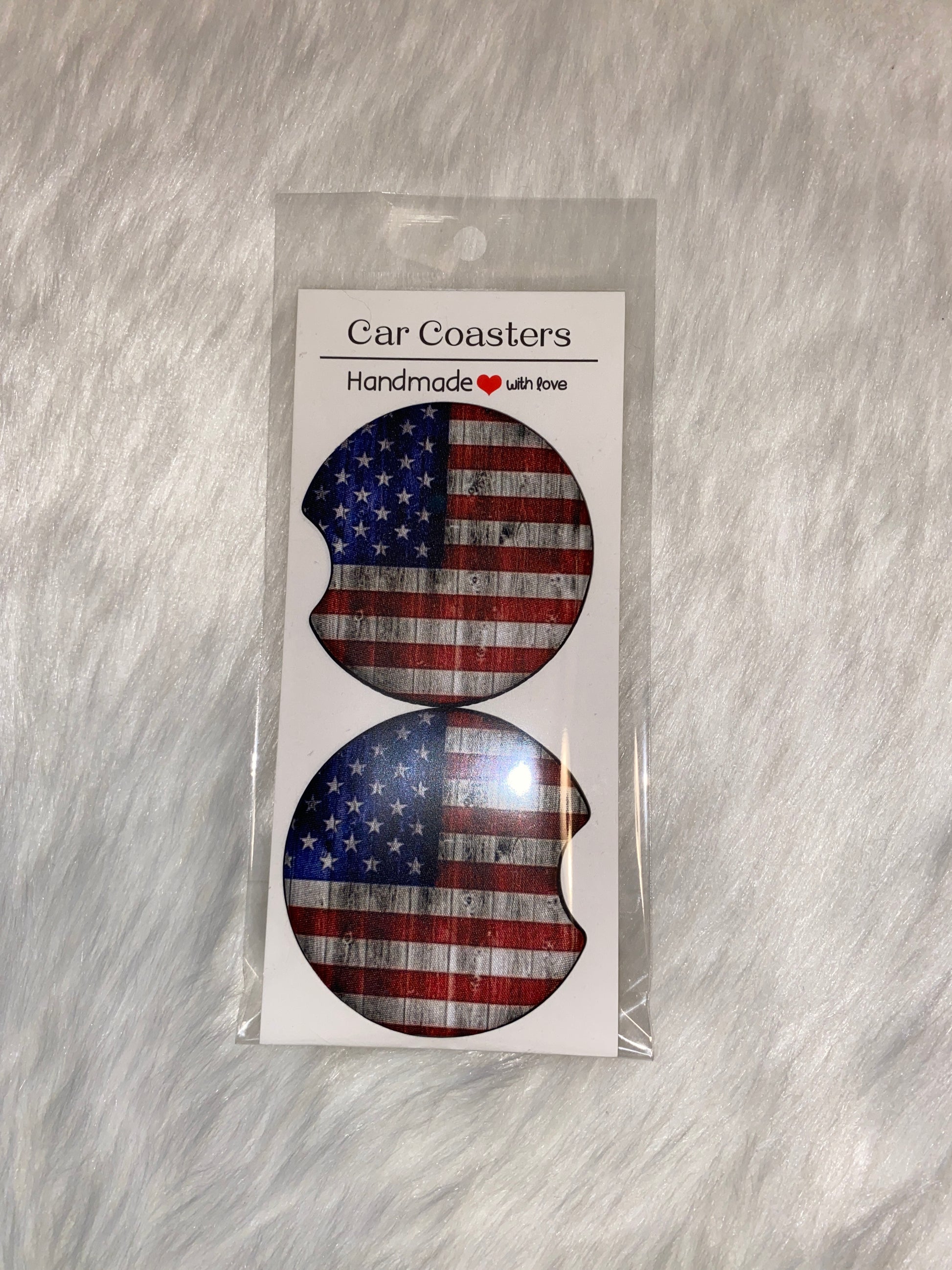Flag Print Car Coaster Set