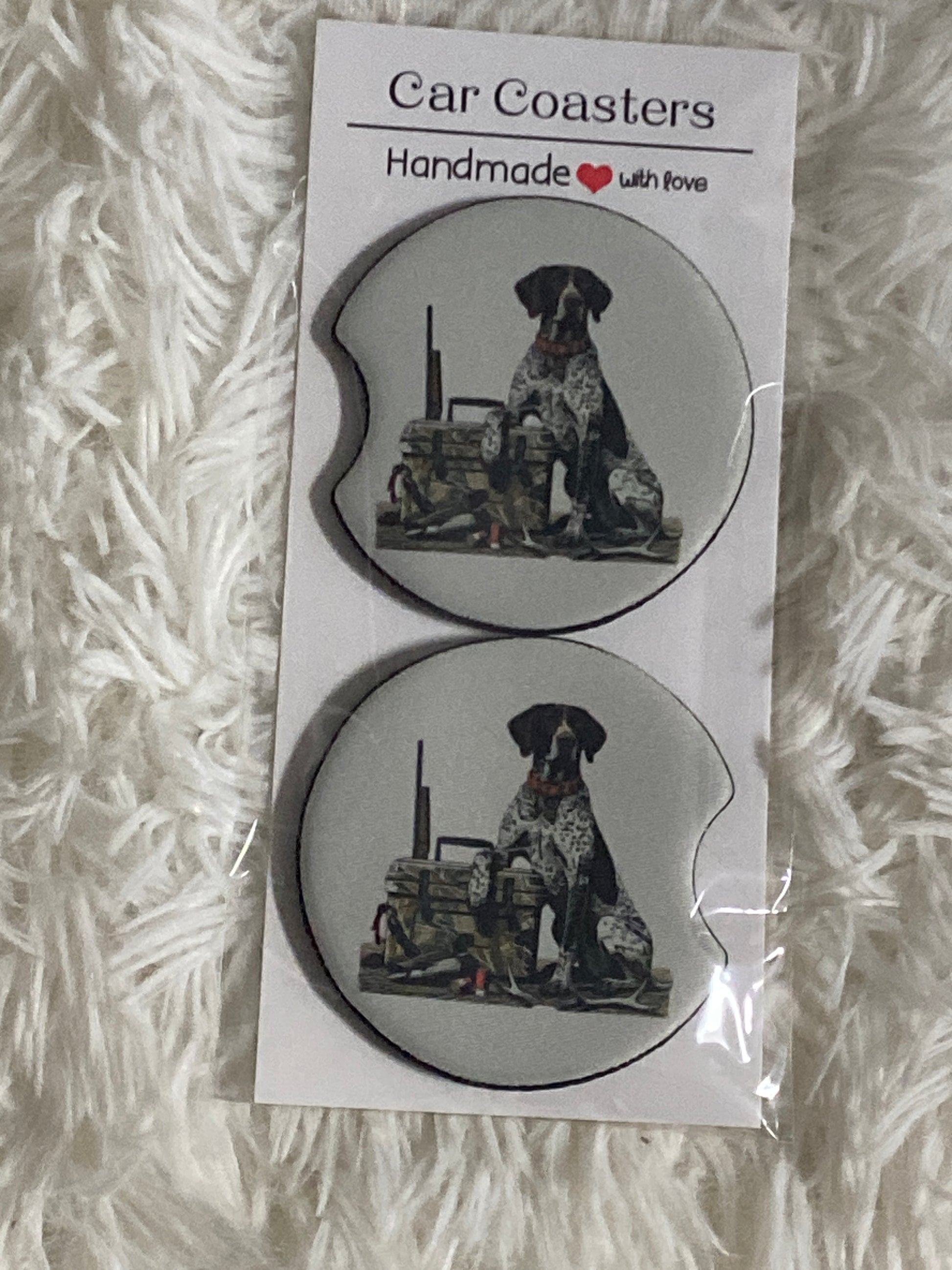 German Pointer Hunting Dog Print Car Coaster Set