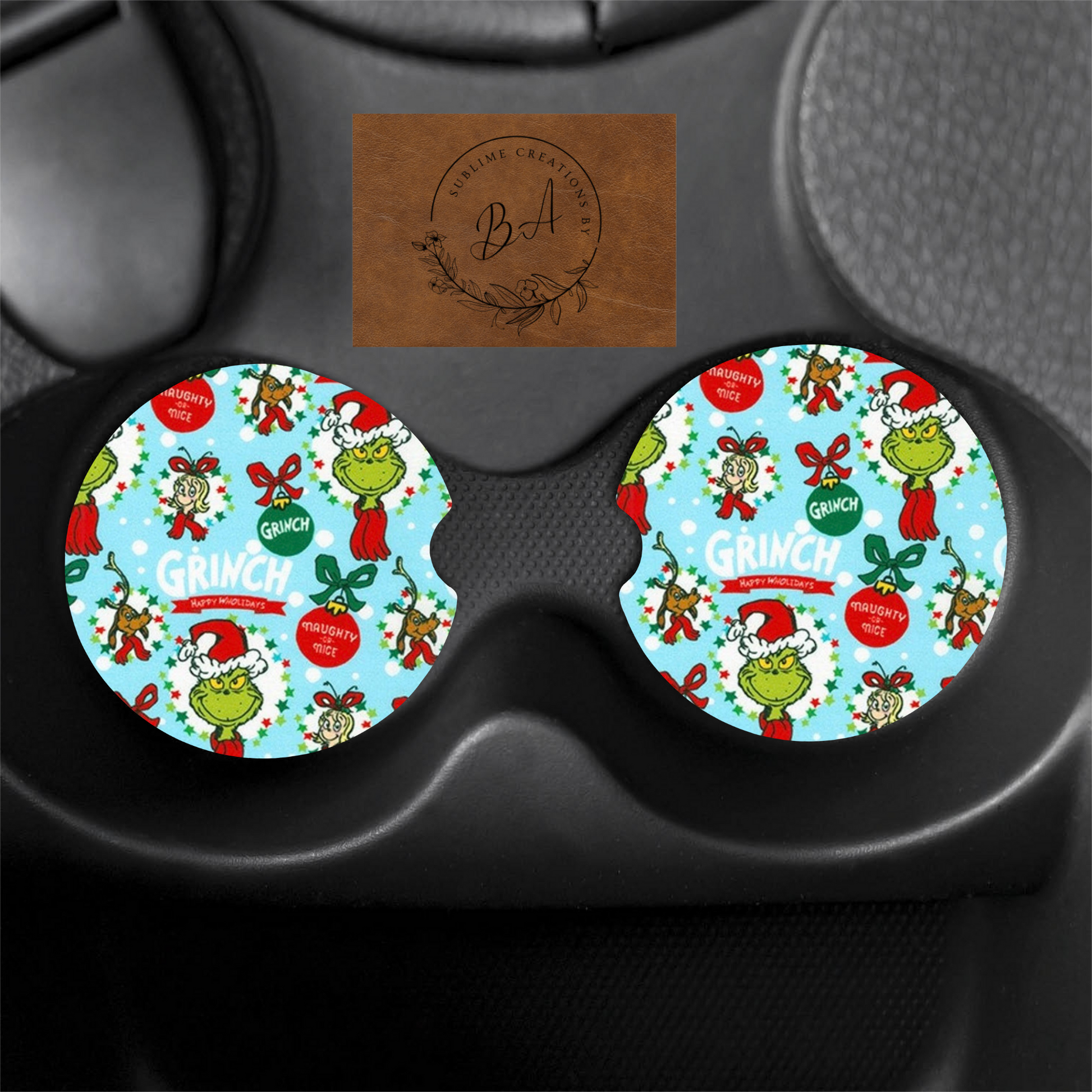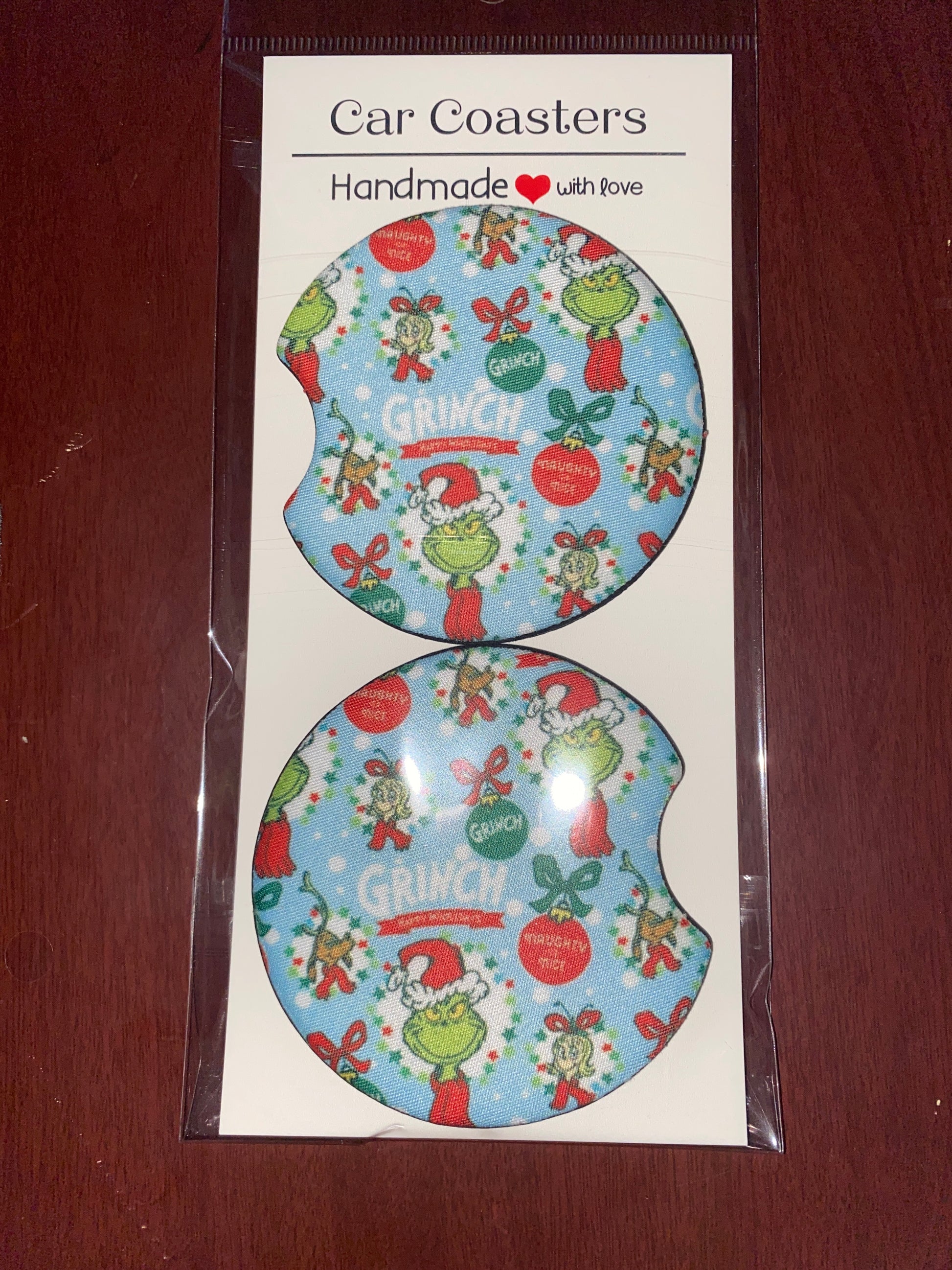 Green Christmas Print Car Coaster Set