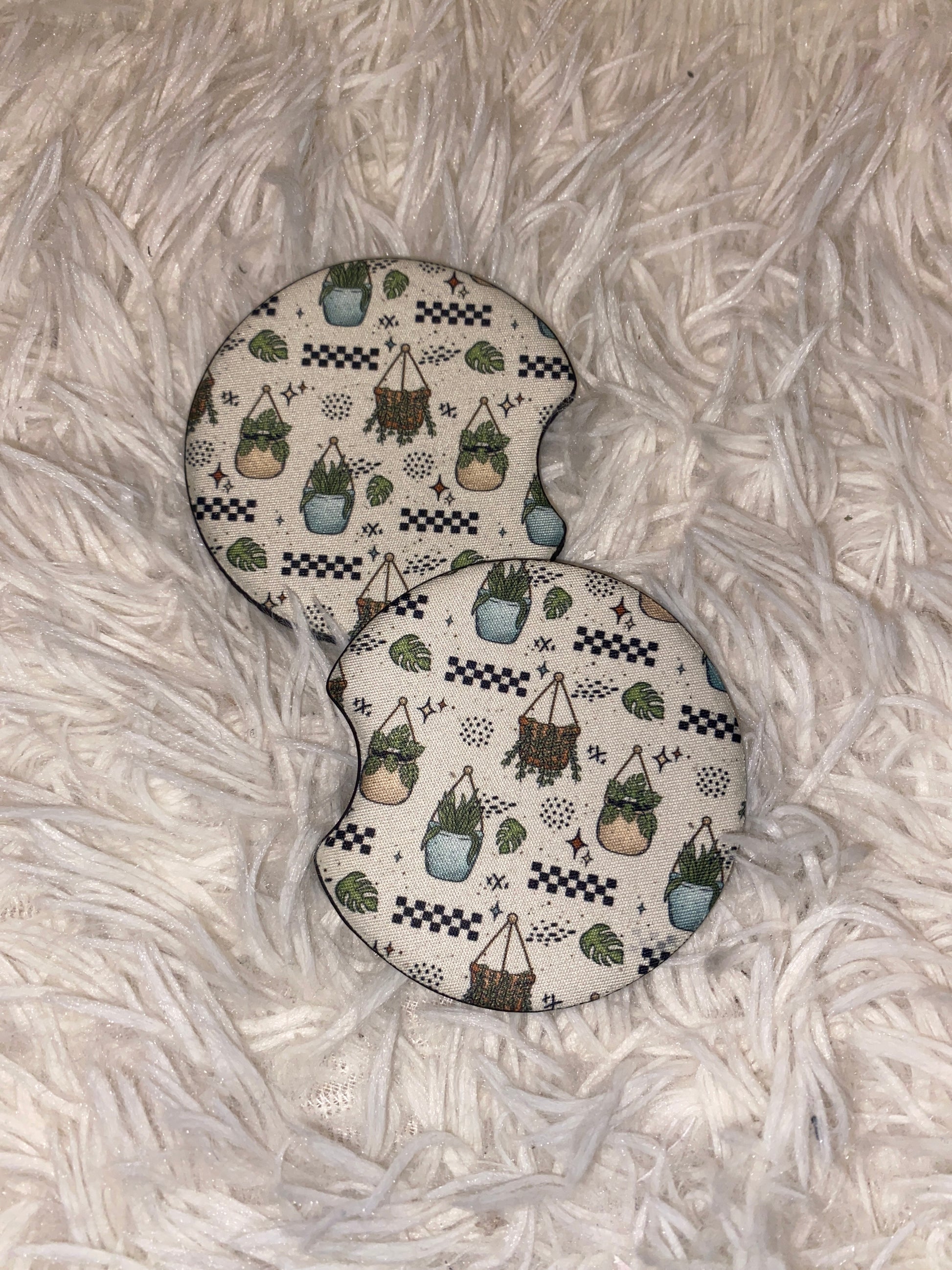 Hanging Plants Print Car Coaster Set
