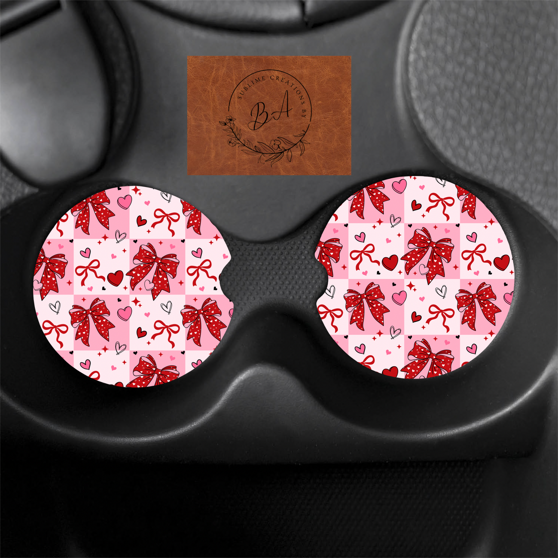 Heart and Bows Seamless Print Car Coaster Set