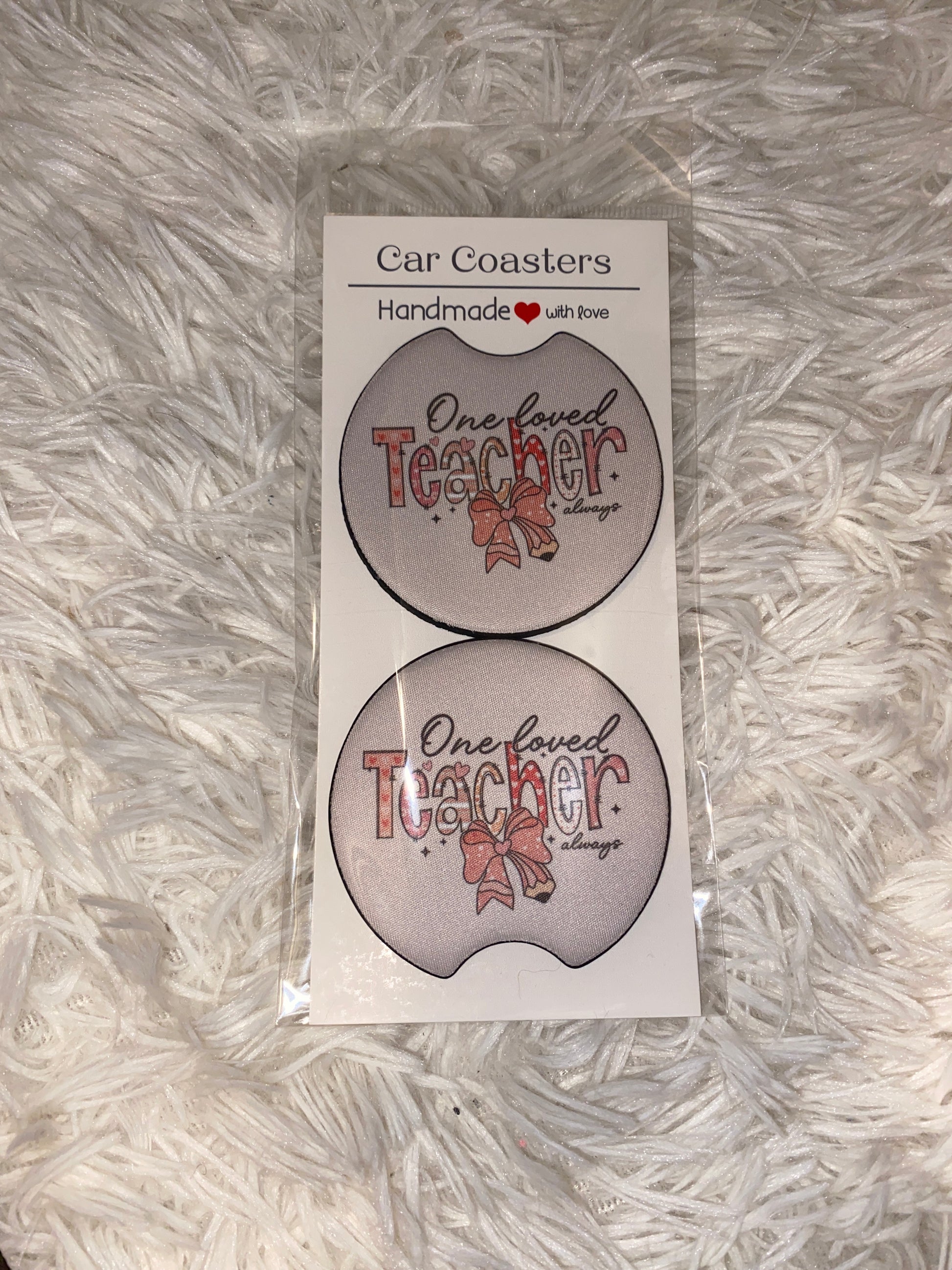 “One loved teacher always” Car Coaster Set