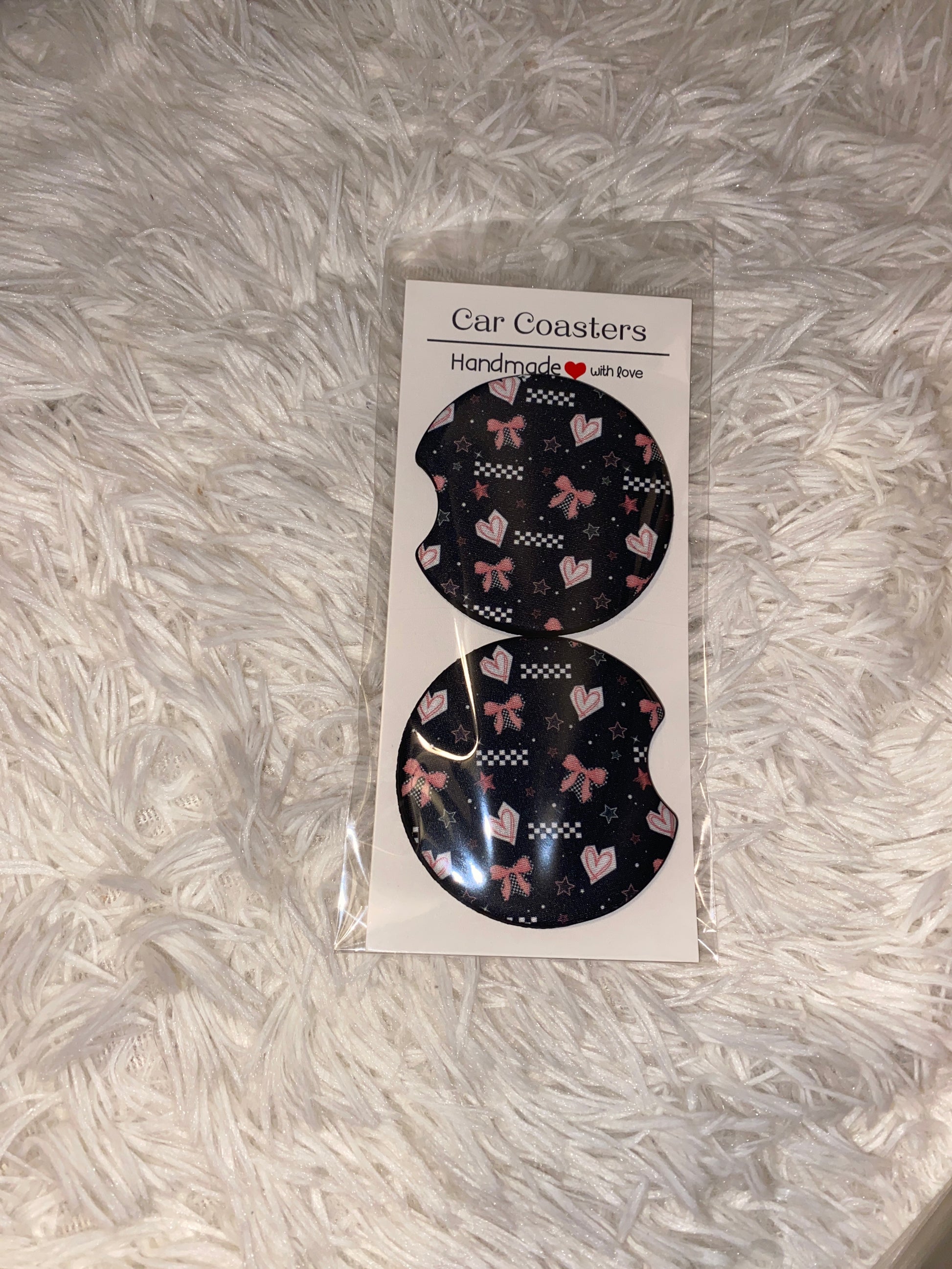 Pink Bows and Stars Print Car Coaster Set