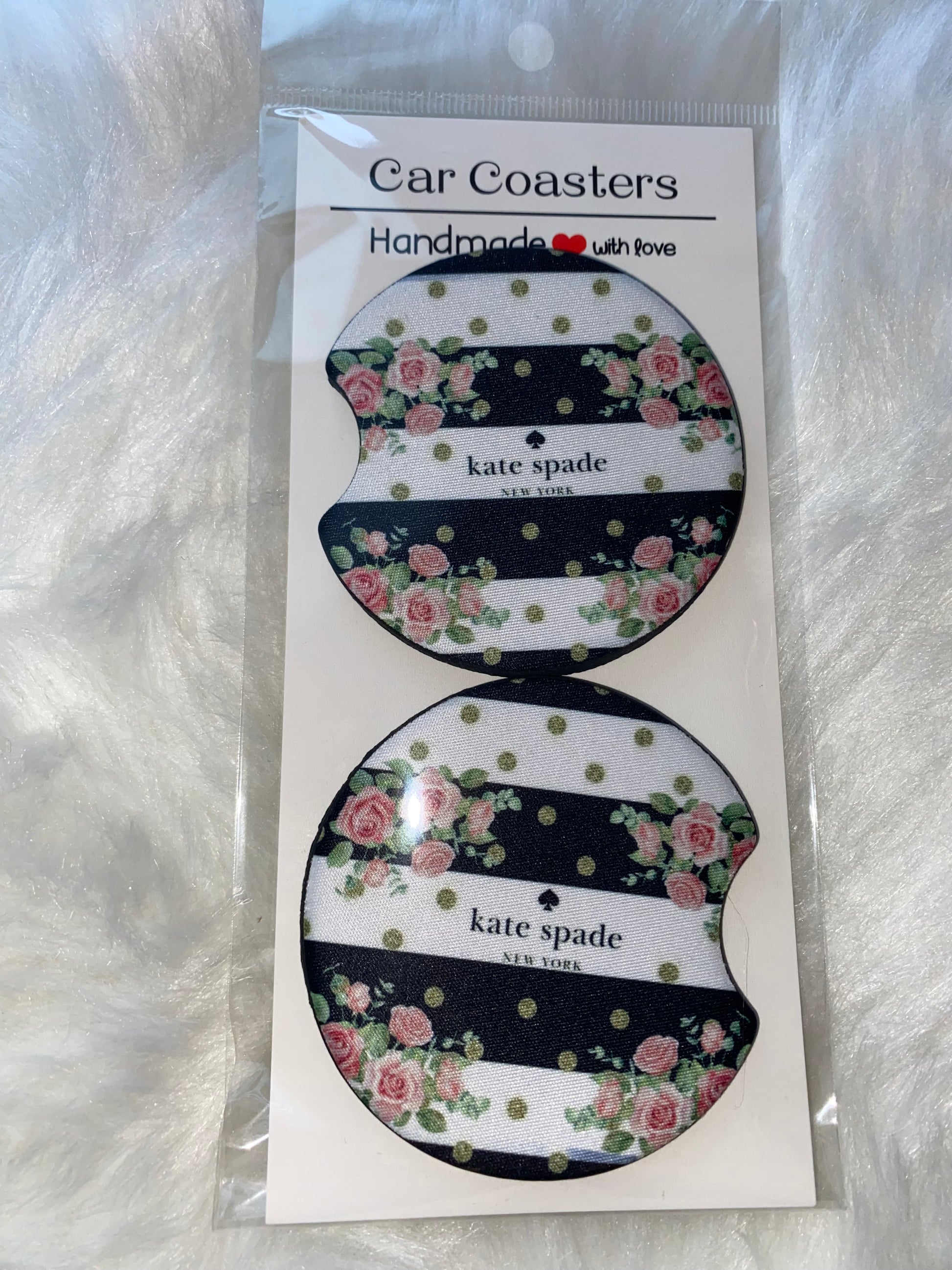 -Comes in a set of two neoprene fabric coasters