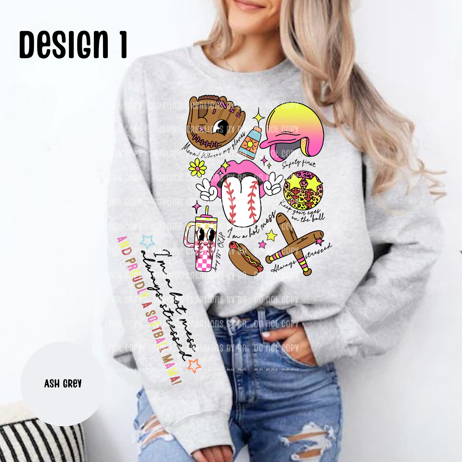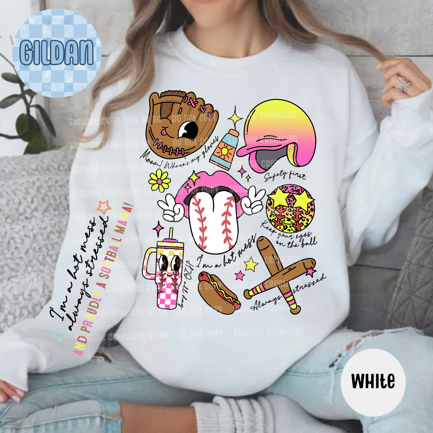I’m a Hot Mess Always Stressed and Proudly a Softball Mama Sweatshirt