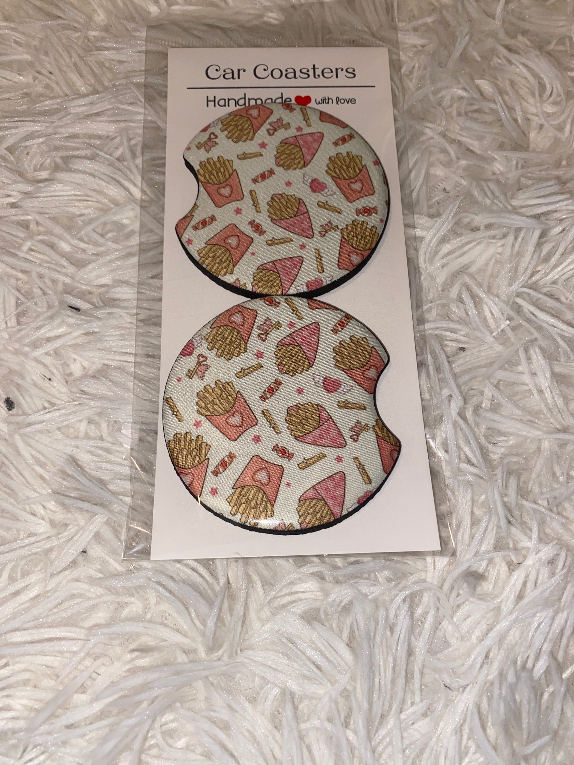 Valentine Fries Print Car Coaster Set