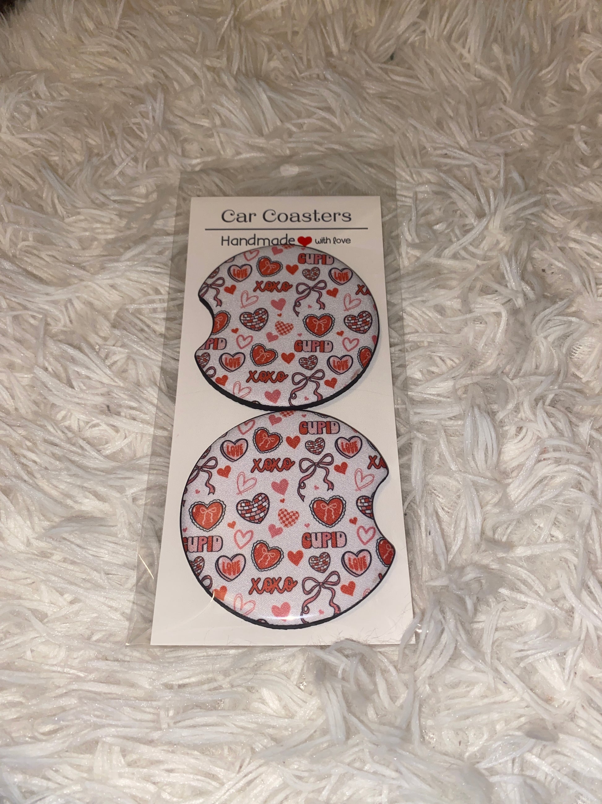 Valentines Cupid Print Car Coaster Set
