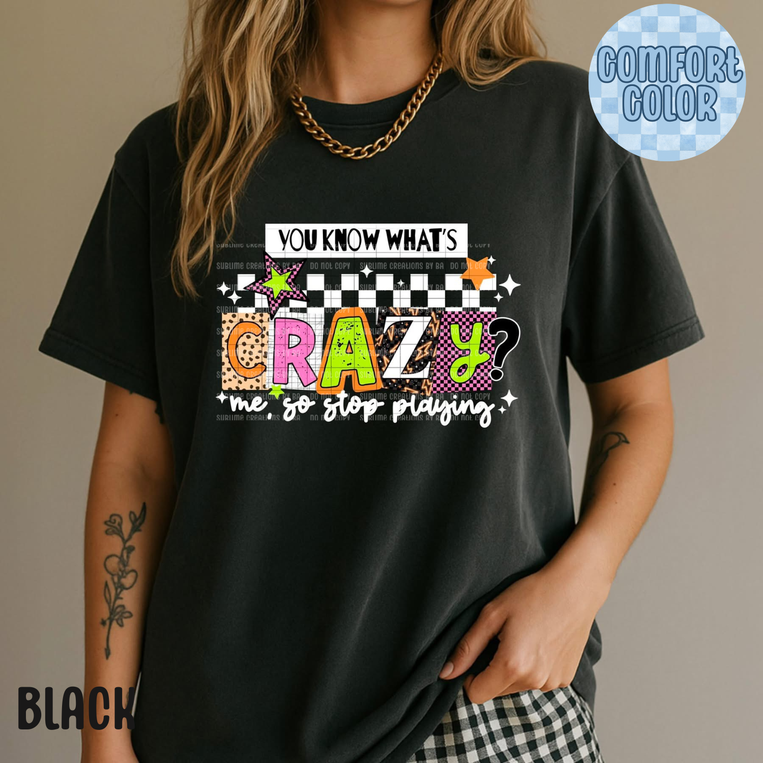 Say it loud (and wear it proud 😏) with this “You Know What’s Crazy? Me, So Stop Playing” shirt. Bold, colorful, and full of personality, this tee is perfect for anyone who embraces their humor, sass, and confidence.